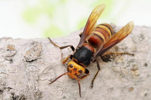 するとその場を空中で飛び回って見ていたアシナガバチが怒り狂い担当コバヤシに襲いかかって来ました。担当コバヤシは危険を察知して蜂駆除スプレーを飛び回るアシナガバチに噴射するとアシナガバチは退散していきました。