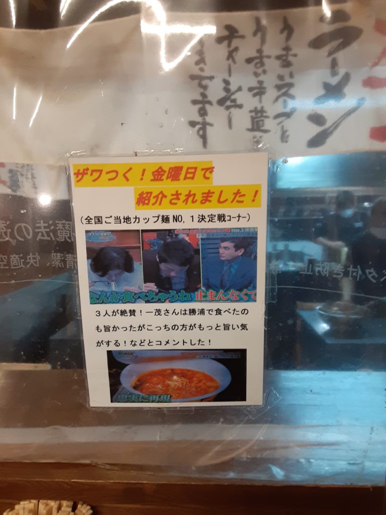 勝浦市のご当地ラーメンです。今回かえるさんが頂いたラーメンは勝浦タンタンメン味噌味950円です。勝浦のタンタンメンは海女さんや漁師さんが冷えた体を温める為の定番メニューだそうで確かに食べ終わった後に体から汗が出ていました。950円だけあって美味しかったです。タンタンメンおかわりしたかったです。