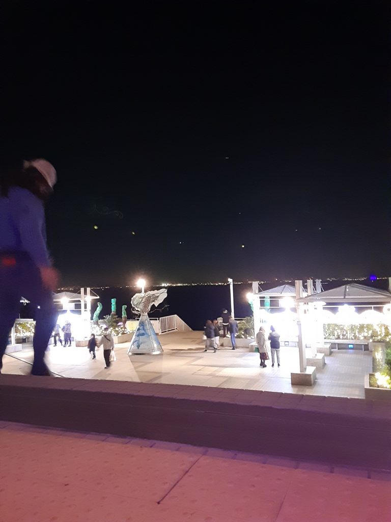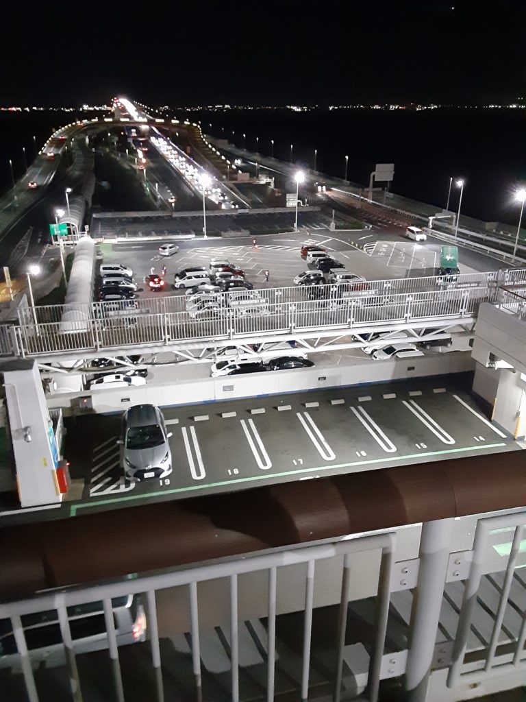 下道から自宅にかえるのが面倒くさくて東京湾アクアラインを利用しました。高速道路を運転中、かえるさんは眠くなってきたので海ほたるで休憩しました。昼間とは違って夜空に飛行機の照明があちらこちらに灯り近代文明の力強さを感じました。因みに海ほたるはドローン禁止です。