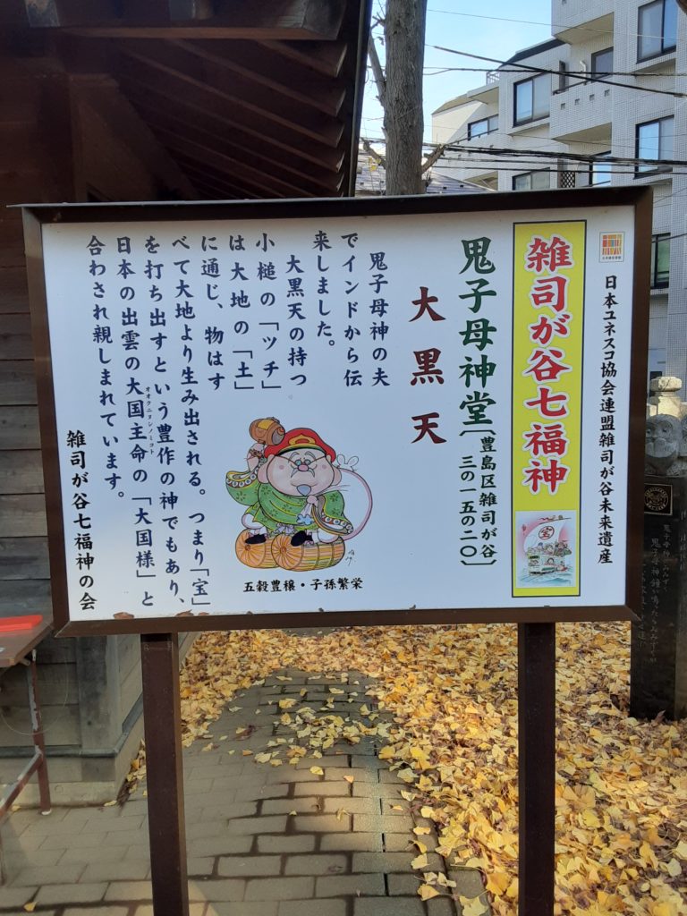 鬼子母神の【鬼】には角がありません。田になっているのが面白いです。又、鬼子母神の旦那様が大黒天なのには驚きました。その他にも巨木の欅並木やらお土産、団子に日本で一番古い駄菓子屋さん等があり鬼子母神周辺は時代が変わっても情緒溢れた場所でした。