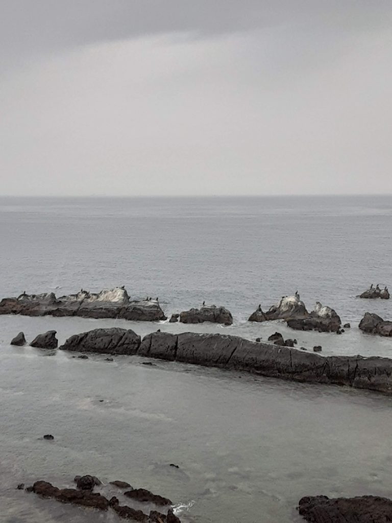 リサイクルショップかえる担当コバヤシです。鋸山(のこぎりやま)を下山途中で日本寺境内を散策して表参道から国道に戻りました。駐車場まで約45分間位冷たい雨に打たれながら海沿いを歩いて幾つもの狭いトンネルを車に注意しながら歩き、歩行者、自転車では至極危険であろうトンネル入口には歩行者用押しボタンがあり、そのボタンをポチっと押してからかえるさん一行は一列に隊をなしトンネルを歩んで行きました。後ろから車が来る音が段々近づくにつれ、かえるさんは緊張の度合いが増して、子どもたちに何かあったらいけないと思い、走行車に対してかえるさんは壁となり守ってやらなければと全身に力を入れて車にぶつかった時に走行車両から子どもをいなすイメージを持ちながら歩いていたのですが全車両、かえるさん一行を避けて通り過ぎて行きました。かえるさんは変な汗をかきました。