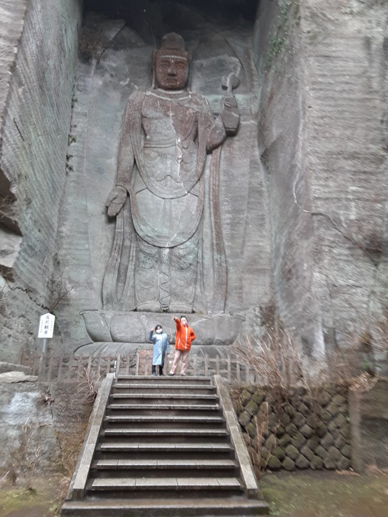 鋸山 百尺観音 かえるの足跡 2022.03.26 鋸山(のこぎりやま)の石切場跡にある日本寺境内に昭和41年に6年の歳月を費やして石を削り掘り出した仏があります。高さが約100尺(約30m)だそうで百尺観音と呼ばれています。百尺観音は太平洋戦没者の供養や航海、航空、陸上交通の安全を守るご本尊として崇められているそうです。かえるさんの感想は「でっけぇ!」→(大きいなぁ)と思いましたケロ。