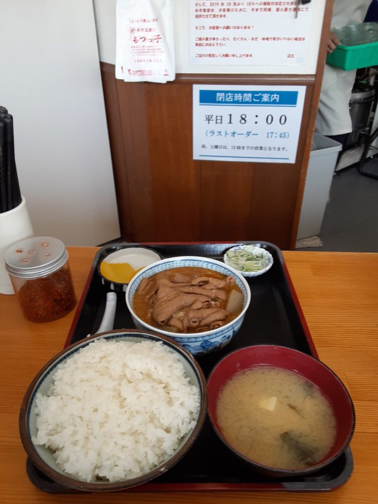 【旨い!】とにかく旨い!もつ煮の旨味が染み出ているコンニャクも旨い!又、赤味噌の汁が残っていたので捨てるのは【もったいない】と思い、年を聞いたら「何言ってんだ!この野郎!」と言われそうな威勢の良い女性店員さんにご飯のお代わりをお願いしました。